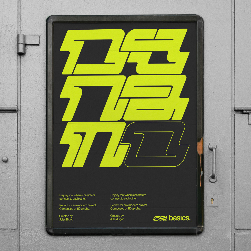 Briske is a display font designed by typographer Jules Bigot, where characters connect to each other, perfect for any modern project. Composed of 110 glyphs : regular, extended, numbers, symbols. It’s bold and confident presence makes it perfect for clothing, album artwork and poster designs.