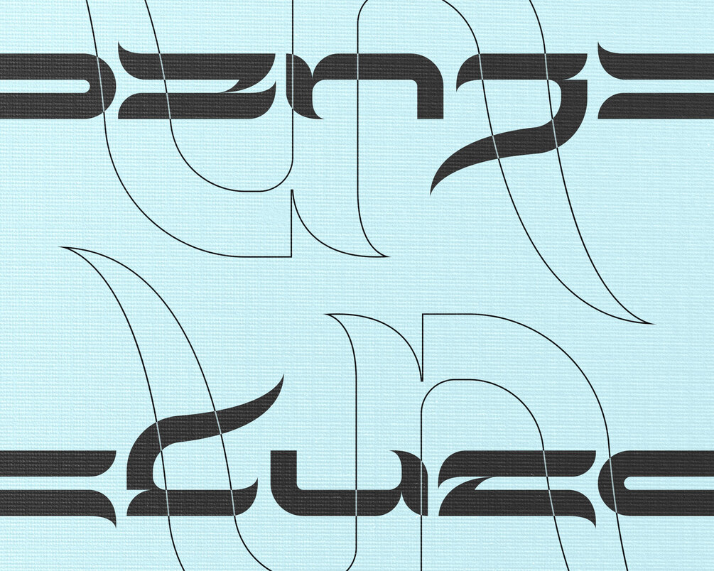 Experimental futuristic font called Cluzo, with Egyptian/Arabic influenced characters.