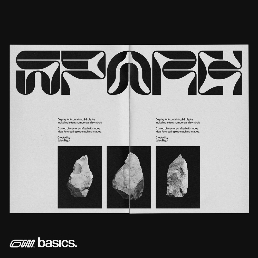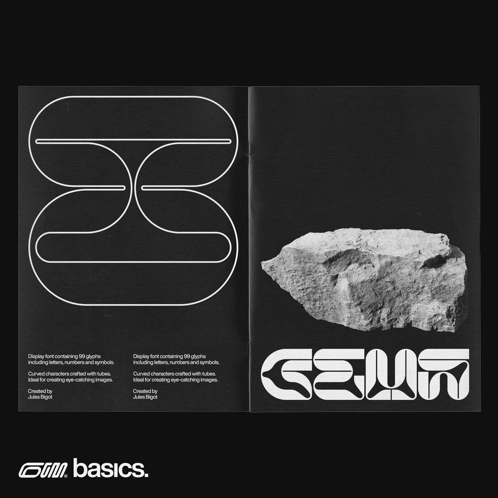 Discover Daruma 2.0, a contemporary display typeface with decorative curved characters made of tubes, ideal for creating eye-catching posters and captivating book covers. This font easily enhances the visual composition of your artwork. Containing 99 glyphs, including letters, numbers and symbols.